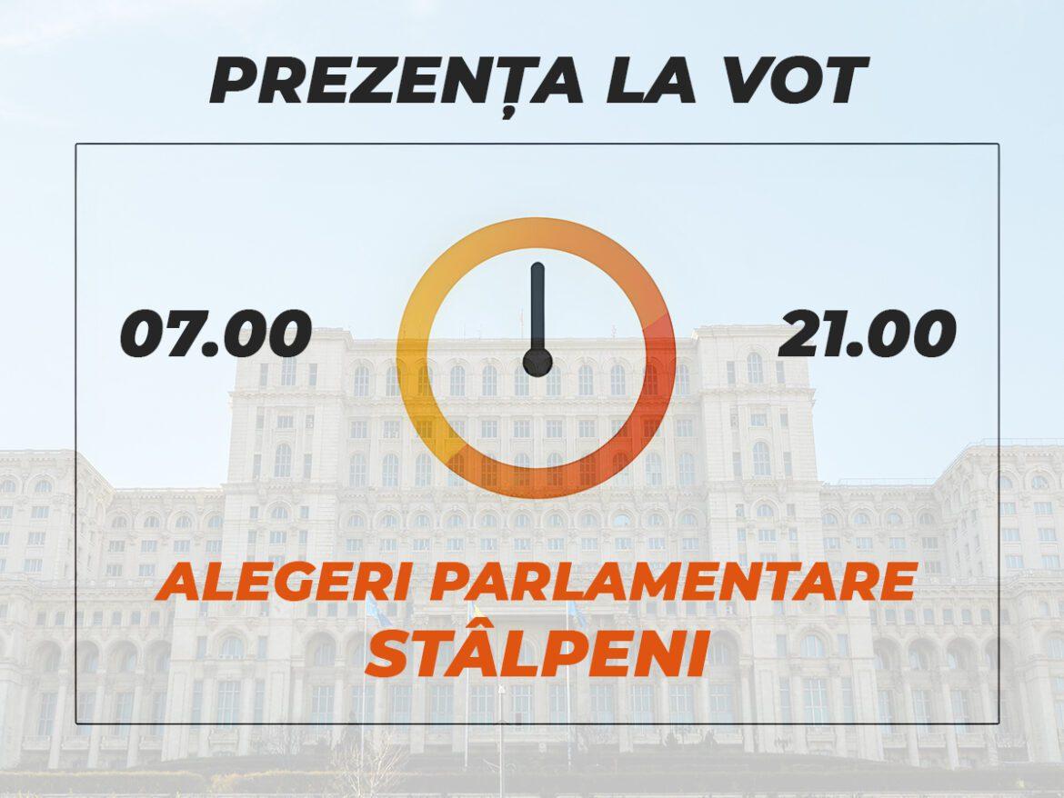În comuna Stâlpeni, la alegerile parlamentare de astăzi, prezența la urne până la ora 09:30 a fost de 7,88%, în creștere față de 5,95%, înregistrată în aceeași interval orar la primul tur al alegerilor prezidențiale din 24 noiembrie.