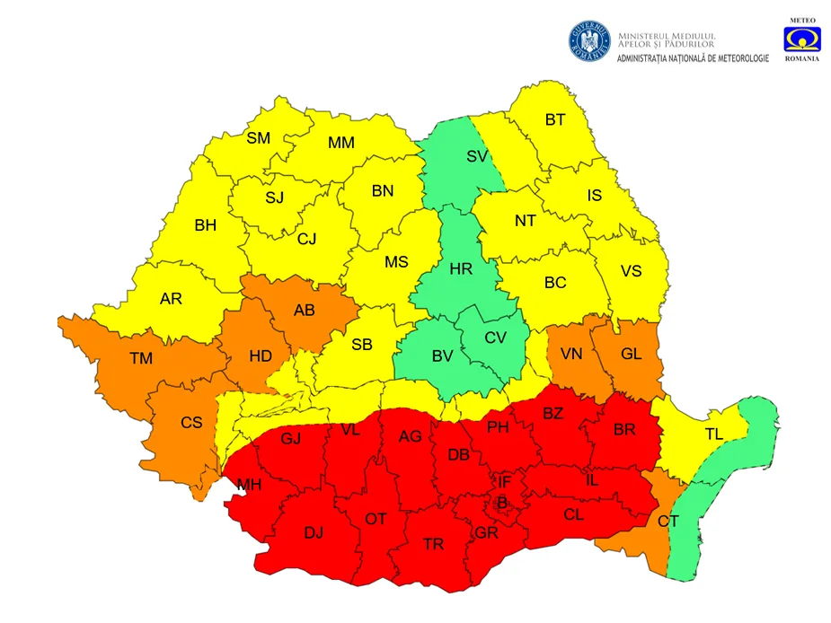 Pentru astăzi, intervalul 6 iulie, ora 10:00 – 7 iulie, ora 10:00, este valabil un cod portocaliu de caniculă. Temperaturile maxime vor atinge valori între 36 și 39 de grade Celsius, iar pe timpul nopții mercurul din termometre nu va coborî sub 20 de grade. Aceste condiții definesc o noapte tropicală, iar disconfortul termic va fi accentuat, cu indicele temperatură-umezeală (ITU) peste pragul critic de 80 de unități.