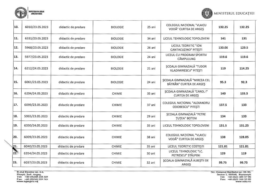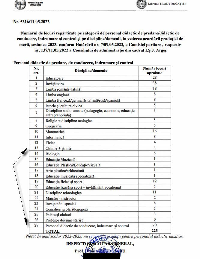 Ținând seama de faptul că doamna Postelnicu Elena este atât profesor de chimie, cât și director de liceu am verificat pe site-ul ISJ Argeș și am aflat că, pentru acest an, au fost disponibile 4 gradații de merit pentru Chimie + Științe și 20 de gradații pentru Personalul didactic de conducere, îndrumare și control. Conform rezultatelor publicate de ISJ Argeș, doamna director a optat doar pentru chimie și științe, obținând (poziția 22 din tabel), cu doar 119 puncte, clasându-se pe locul 7 din 8 candidați. Loc în afara pozițiilor scoase la concurs.